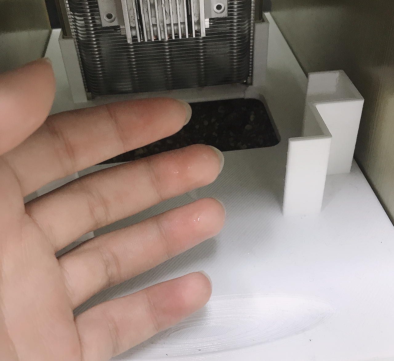 이렇게 열전소자를 이용해 냉각판을 이슬점보다 차갑게 만들고 냉각팬이 공기를 순환시키면 공기 중의 습기가 물이 됩니다. 하루 평균 40cc의 물을 모을 수 있으며, 여름철에는 70cc의 물을 모으는데 이는 식물이 자라기에 충분한 양입니다. 만들어진 물이 화분의 상토에 스며들어 식물에 공급되는 원리입니다.