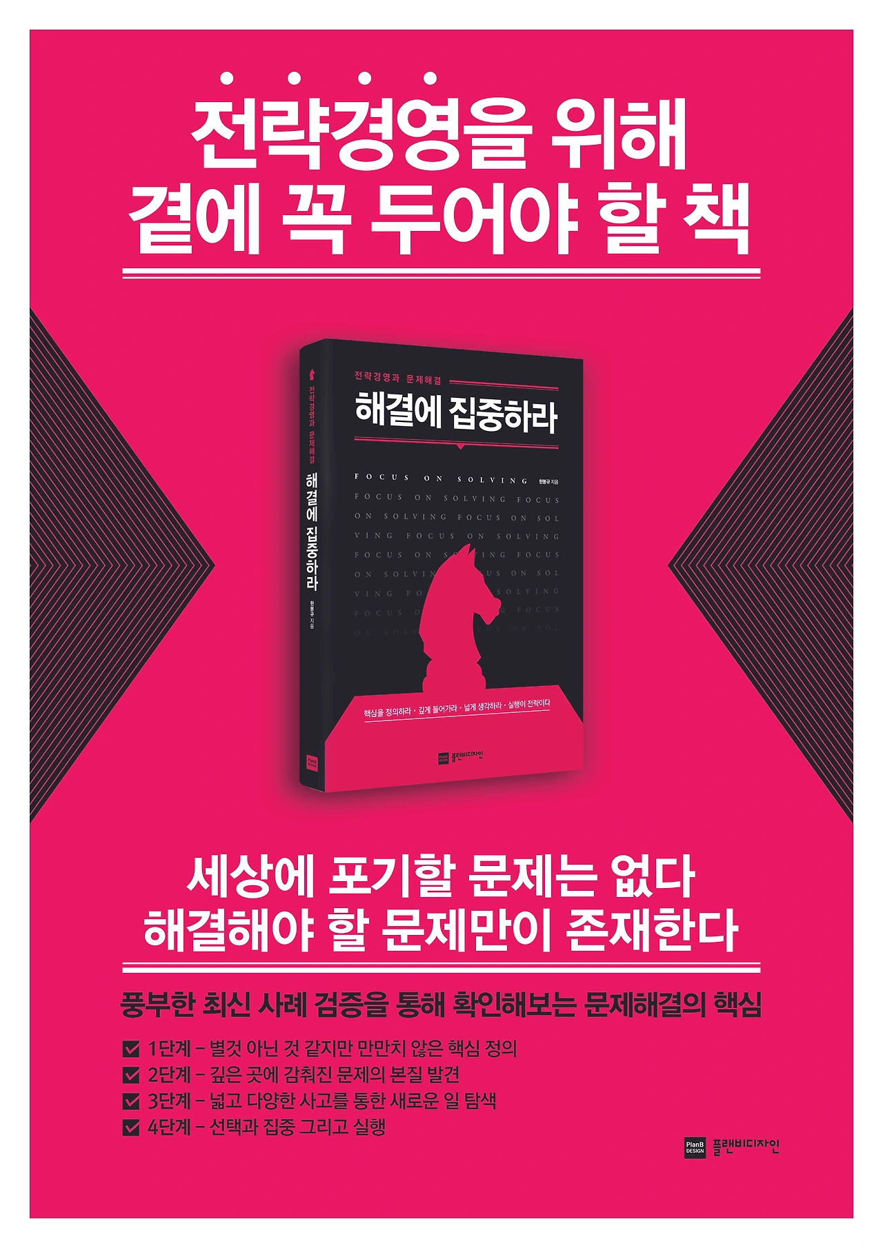 문제해결의 기본서『해결에 집중하라』는 실용서이다. ‘전략경영’과 ‘문제해결’ 두가지를 실제적으로 익힐 수 있도록 구성되었다. 저자가 직장생활을 통해서 쌓은 경험과 강의활동을 통해서 얻은 지식과 기술을 아낌없이 기술해 놓았다. 단순한 기업의 성공스토리가 아니라 전략경영 사례로서 기존과는 다른 시각으로의 접근을 시도했다. 전략경영 사례안에 ...