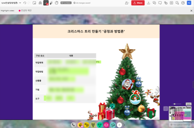 크리스마스트리를 완성한 후 모두 환호성을 질렀다. 어디서냐면 온라인 뮤랄에서 말이다. 온종일 로직트리와 구조화에 넋 다운이 된 심신을 달래는 데는 동심이 역시 최고였다.