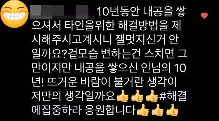 인스타에 글을 게시하고 한두 시간 뒤 한 분이 내게 남겨 준 글이다. '내가 기억하는 10년이 곧 뜨거운 바람이 불 것'이라는 것이다. '쇳소리'에 마음 뒀던 탓일까. 쇳소리가 잦아들더니 그 자리에 뜨거운 눈물이 솟구치는 듯했다. 위로를 받고 싶었던 모양이다. 이 작은 나비 짓이 내 마음을 다독인다. 내 마음도 모르고 지나칠뻔한 일을 한 분이 길을 멈추고는 내 마음 한곳에 쌓아 둔 어리숙함을 털어 내 준 셈이다. 사람 사는 세상이란 이런 삶이었다. 내가 미처 살지 못한 삶이었고, 내가 살아 나가야 할 삶이란 사실도 새삼 알았다.
