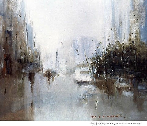 그러고 보니 화가의 그림은 고통을 씻어낸 도시를 맞이하고 싶은 소망아닐까요. 우연히 내린 비에 화가의 그림은 소망을 담은 필연적 결과였을겁니다. 작가의 소망이라 여기니 작품을 다시 봅니다. 빗방울이 선명한 것이 반드시 다가올 봄의 전주곡 같습니다.