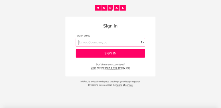 Work Email을 강조하는 것이 특별한 일은 아니다. 하지만 뮤랄 사용자 지향성이 기업이라면, 'Work'를 유난히 드러낸 까닭도 이해할 수 있다. 때문에 MURAL은 '유료'로 쓰는 것이 옳다라는 점을 피력하는 듯 싶었다. 아니나 다를까 30일 평가판 사용 후에는 유료로 전환하지 않으면 평가판 기간 동안 애 써 만든 템플릿을 더는 쓸 수 없다.