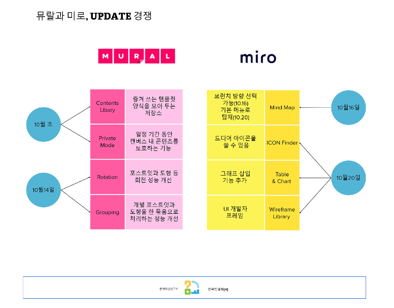 마치 이 ZAPP을 디데이 삼아 온라인 화이트보드 프로그램 지위를 선점하려고 업데이트를 미뤘던 것은 아닐까도 싶었다. 이 점에 있어서는 뮤랄은 10월 초부터 업데이트를 시작했고, 미로는 줌토피아 폐막일에 즈음부터 선보였다.