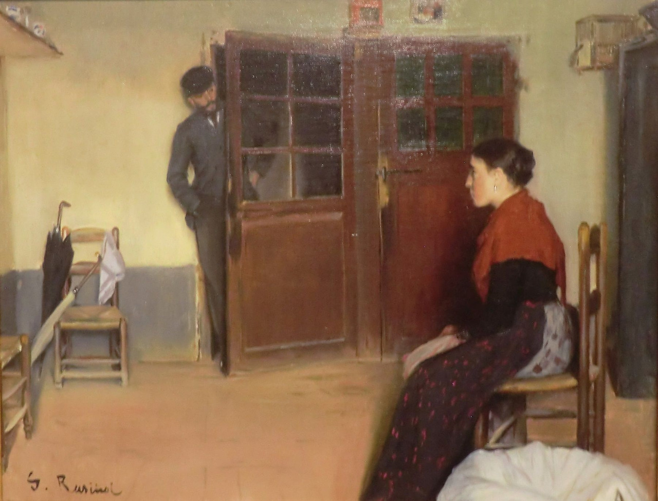 Ramon Casas 역시 Santiago Rusiñol에게 영향을 받은 작가라고 한다. 어떤 면이 그러한지를 살펴볼 재량은 안되지만 두 작가 작품을 보면서 든 공통점은 있다. 바로 작품 소재이다. Ramon Casas 작품 Interior al aire libre(1892) 화면 구도와 빛의 굴절과 세기 윤택함과 붓질 테크닉은 분명 다르다. 하지만 소재를 발굴하고 소재에 서사를 입히는 면만큼은 분명 Santiago Rusiñol 여러 작품을 감상하며 얻은 통찰 결과로 보인다.