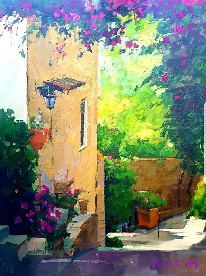 카페 앞마당에는 온갖 꽃들이 늘 춤을 춘다. 커피 향보다 꽃 향이 지나는 이의 마음을 먼저 끄는 곳이었다. 한데 그 자리에 이번에는 그림이라고 하신다. 여행지에서 품고 오신 감성이 한 바탕 축제 분위기이다.