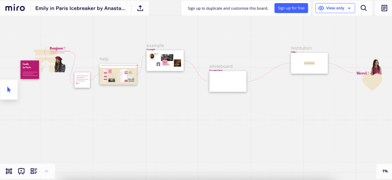 아이스브레이킹 프로그램을 찾고자 한 것이 시작이다. 뮤랄과 미로 두 온라인 화이트보드 블로그를 탐색했고 그중 MIROVERSE(워크플로를 공유하는 미로 플랫폼)에서 'Emily in Paris Icebreaker'라는 프로그램을 발견했다.