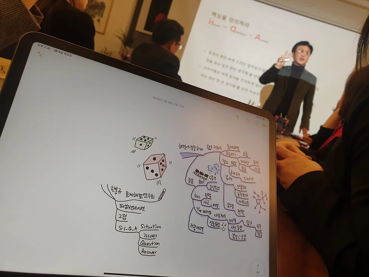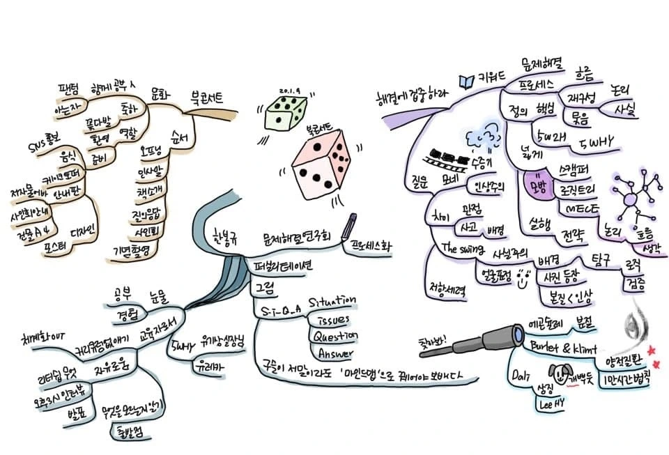 #해결에집중하라 북콘서트가 있었던 날(9일,목요일) 마인드맵 오소희 대표께서 찍은 강의 사진 입니다. 한 문장이 끝날 때 마다 모든 것이 마인드 맵으로 정리하는 초능력, 그래서 ‘구슬이 서말여도 마인드맵으로 정리해야 보배!’라는 말이 있는가 봅니다.