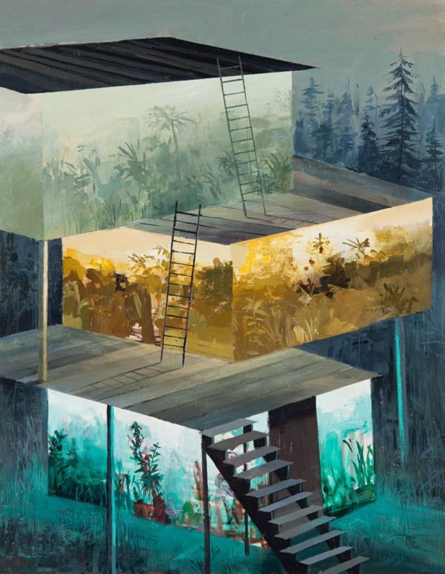 에셔(Maurits Cornelis Escher, 1898 - 1972) 그림을 연상했다. 사다리 때문이었다. 공간을 다룬다는 점은 비슷하다. 에셔 그림은 현란한 착시 현상을 일으킨다. 이를 두고 공간 확장이라고도 하고 무한 반복하는 삶을 질타하기도 한다. 다른 세계를 만나는 방식이라고도 한다. 제레미 작품에서 이런 의미도 찾을 수 있을 테지만 그저 내 안 세계와 내 밖 세계만을 뚜렷하게 구분했을 뿐이다. 안에서 밖으로 나아가는 유일한 방법이 사다리였던 것이 에셔와 다른 점이다. 에셔 작품에서 영감을 얻었는지 그것은 모르겠다. 이런 어릿한 비교로는 제레미 작품을 제대로 감상할 수 없다. 여러 번 보고 자주 본다. 그때마다 깊이 본다. 도대체 이 작가는 무엇을 본 것일까 묻기도 한다. 돌아오는 답변은 없다. 그럼 다시 묻는다 어떤 기억을 떠 올린 것일까라고 말이다. 사다리 타고 올라오라 해서 마음으로 계단 하나씩 밟고 올랐다. 땅 위에서 점점 높아질 때마다 주변 풍경은 새로웠다. 빛이 내 앞에 있으니 아니꼽고 더러운 일들로부터 벗어났다. 사다리 하나를 다 오르자 바깥세상 풍경 몇 개는 다 잊고 새로운 무엇인가를 시작해도 될 것 같았다. 이 속 사정이 나와는 다르겠지만 제레미 역시 사다리를 오르면서 내 마음을 안아주고 살펴주는 희망의 빛만큼은 꺼트릴 수 없다 했을 것이다. 비록 현재 내 삶은 Containers 라 할지라도 매일매일 새로운 빛을 일궈 나를 맞이하는 이 영감 얻는 일만큼 귀하고 소중한 것이 없다며 다짐했을 것이다.