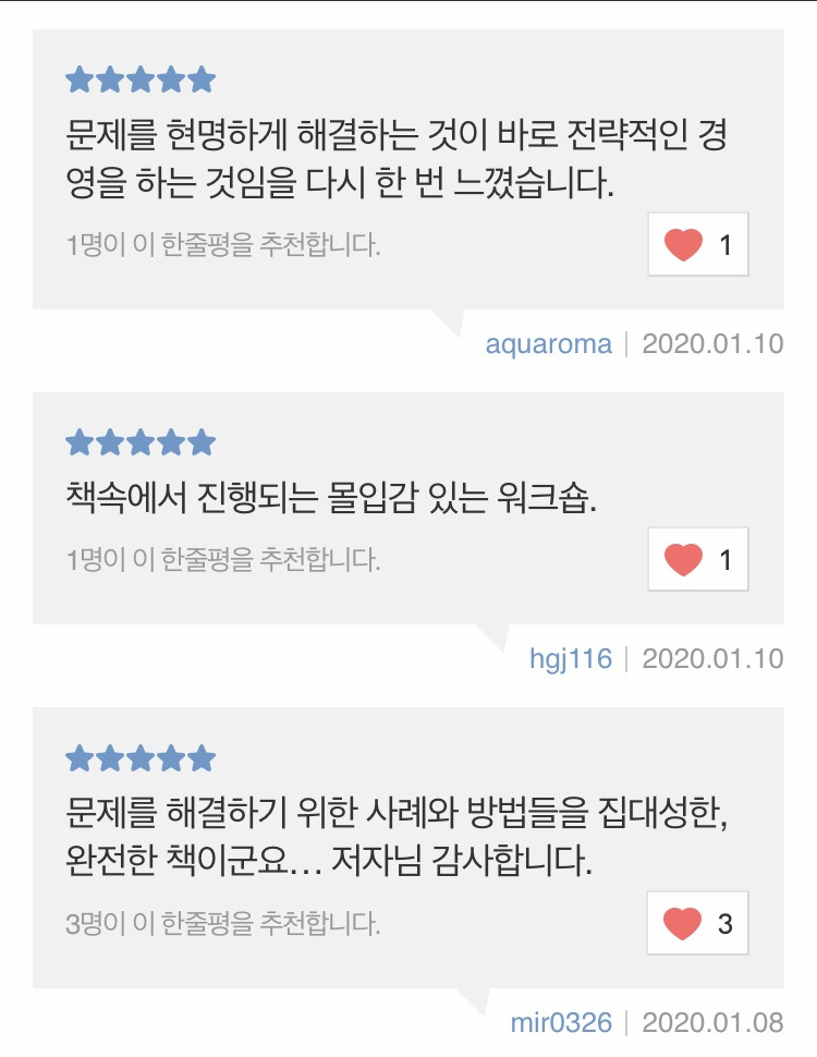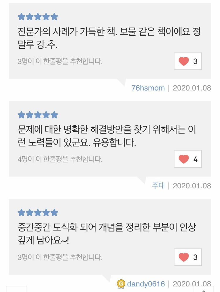 책을 펴낸 저자로서 정독하고 인용하고 반론하고 의견을 물어주는 일은 고마운 일이다. 또한 저자 의도를 간파하는 책 쓰임새를 저자 대신 알려주는 독자는 소중한 분이다. 저자 의도를 한 줄 문장으로 꿰뚫는 15분의 독서 능력이 부럽다. 게다가 한 분 한 분 의견이 모두 곱다.