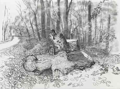 여느 때처럼 Woldgate 길에 들어선 호크니, 단풍은 온데간데없고 앙상한 가지가 볕을 쬐고 있었다. 이런 물건이 언제부터 여기 있었는가 싶게 손발 모두가 잘려나간 그루터기를 본 호크니는 무엇에 홀렸는지 재빠르게 스케치를 했다.
