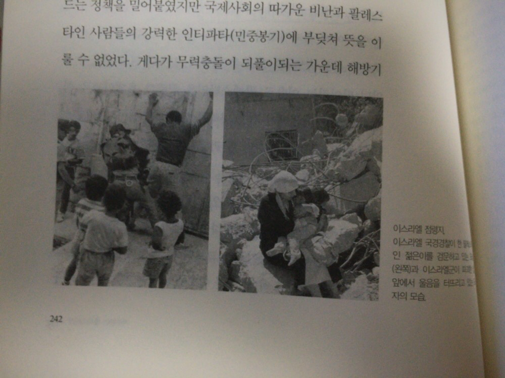 히틀러는 유태인들을 박해했다. 이를 계기로 유대인들은 자신들이 살 곳이 필요하다는 것을 뼈져리게 깨우친다. 성경을 근거로 이스라엘에 간 유대인들. 이들의 선민의식으로 원래 살고 있던 팔레스타인 사람들은 날벼락을 맞는다. 전지적 팔레스타인 시점인 이 부분을 읽으면서 많은 충격을 받았다. 이들이 자살 테러를 감행하는 이유를 어느 정도 이해할 수 있었다.