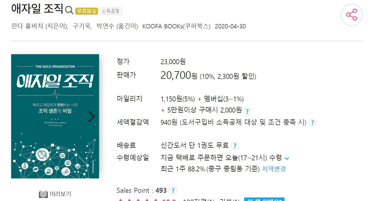 ‘포스트 코로나 시대 지금 당장 팀워크를 재설계하라’라는 책은 매우 실용적일 뿐 아니라 글도 재밌게 쓰셔서 즐겁게 읽을 수 있을 것 같다.(그렇다고 ‘애자일 조직’이란 책을 괴롭고 힘들게 읽었다는 강조의 말은 아님을 미리 얘기해 본다.)