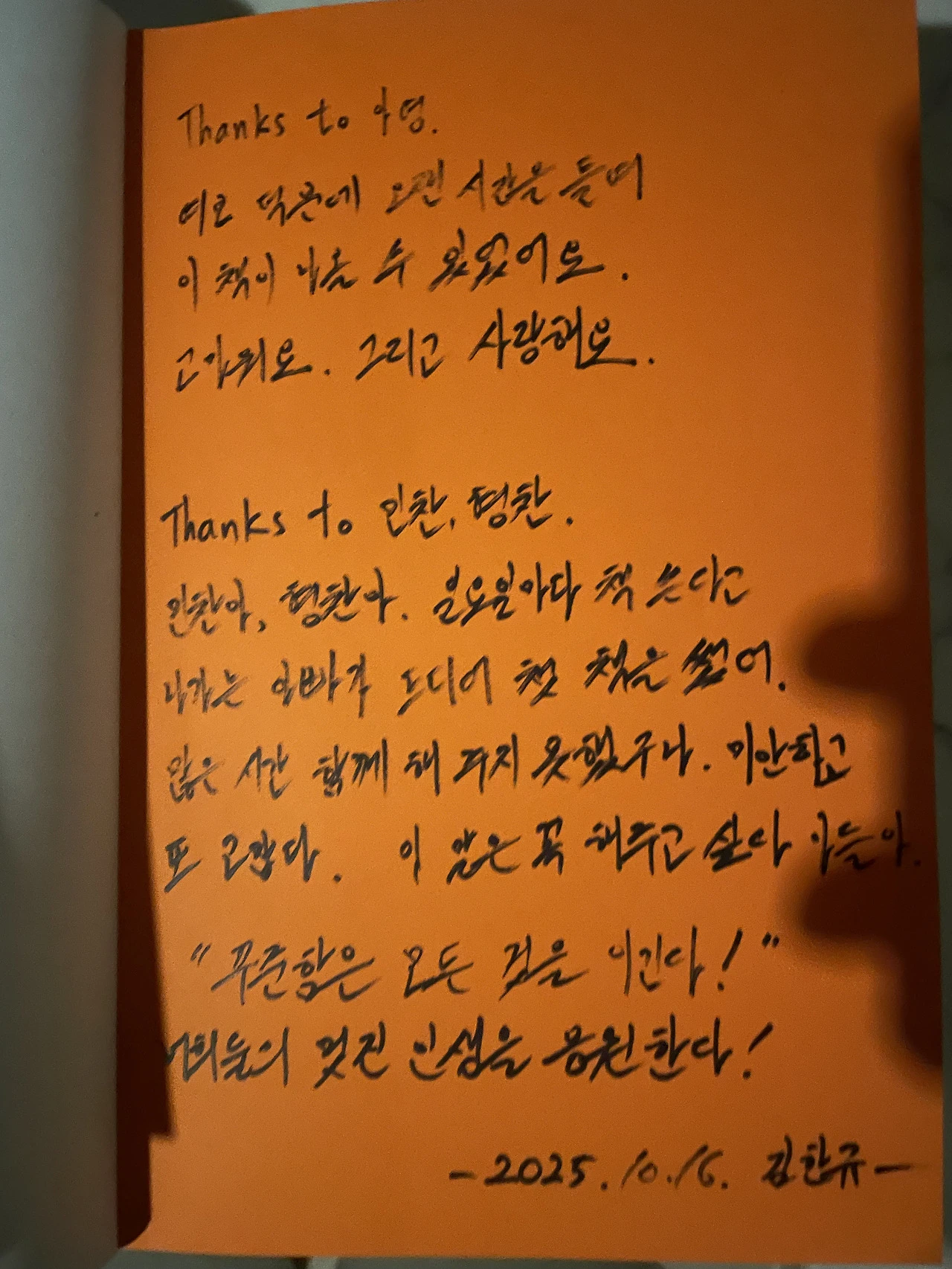 4. 이제는 알겠습니다. 왜 많은 작가들이 책의 시작 부분에 가족에게 헌사를 남기는지. 책은 작가의 손뿐만 아니라 가족의 시간과 함께 쓰여지는 것인가봅니다.