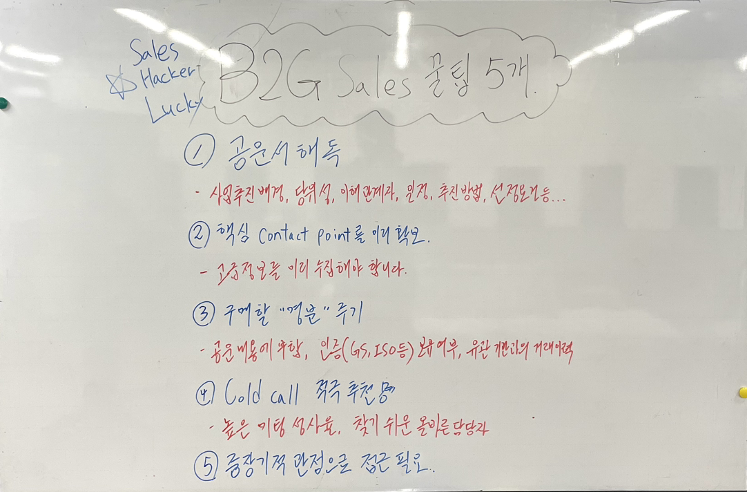 여러분께서는 B2G세일즈에 어떻게 접근하고 계신가요? 위 글에서 소개되지 않은 꿀팁들이 있다면 댓글을 통해 함께 지혜를 나눠주시면 감사하겠습니다!