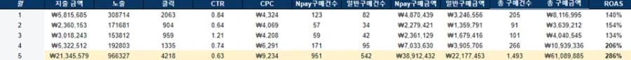 예산 4배 이상, ROAS 3배 이상 개선되었습니다. -