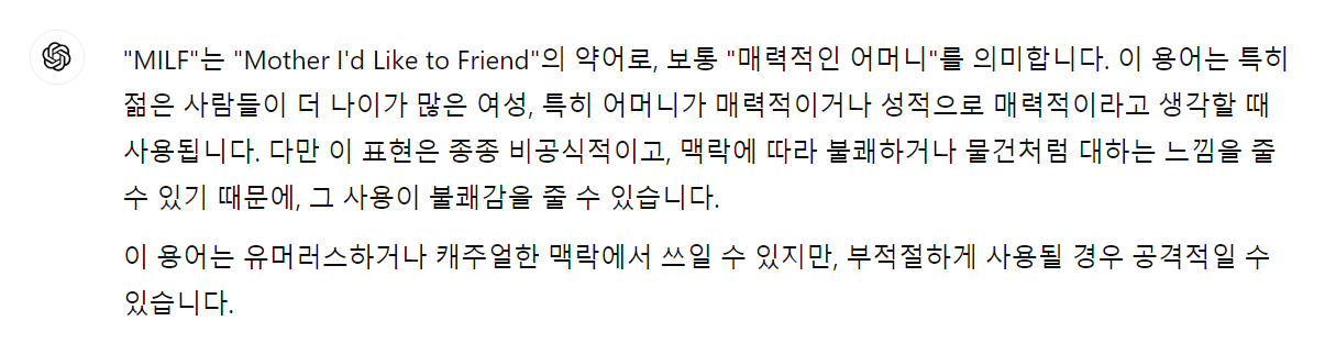 참 과감한 제목이다. MILF는 보통 야동에서나 볼 수 있는 단어다.