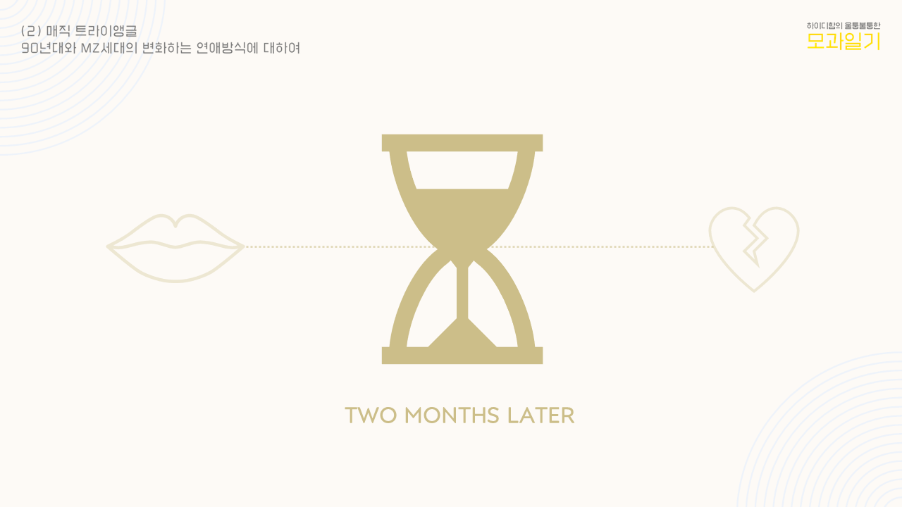 지난 글에서는 저자가 느끼는 연애의 변화를 90s Love에서 MZ Love 로의 전환으로 설명하였다. 두 가지 연애 방식에 대한 주요 차이점은 '사귐'과 '육체적 관계'의 순서, 그리고 국내 또는 서구에서의 보편성으로 정리해보았고, 이후 구형의 첫 번째 방식인 90s Love 에 대한 실제 예시를 들며 글을 마쳤다. 고백 후 사귐을 원칙으로 여기는 순정파 청와대 남자의 썰이 궁금하다면 1편을 참고해주세요.