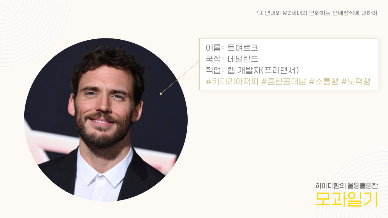이런 생각이 들다 보니 필자는 그 이후로 그를 다시 보고 싶지 않았다. 안 그래도 재미없다고 생각한 만남이 더 의미 없어지는 꼴이었다. 그가 보내는 연락에도 의도치 않게 (마음이 없다 보니) 답변이 늦어지거나 못하게 되는 경우도 잦아졌다. 이대로 그냥 자연스럽게 멀어져 만남이 중단됐으면 했다. 그러나 트여르크의 진가는 그가 직접적이고 소통형이라는 데에 있다. 그는 불편한 상황을 절대 어설프게 회피하지 않는다. 여러 사람을 만나보니 이 점이 굉장한 장점이라는 것을 체감하고 있다.