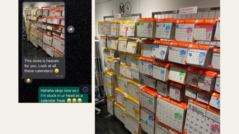 30m2 남짓 안 되는 나의 작은 호치민 원룸에서 190cm의 장신 트여르크가 들어와 가장 놀라워했던 것은 다름 아닌 달력 개수였다. 벽기둥에도, 탁자에도, 현관에도, 침대 머리에도 달력이 있었다. 그는 그게 상당히 충격적이었나 보다. 오죽하면 그는 일본 여행 중 한 문구점의 달력 코너에서 내 생각이 났다며 사진을 찍어 보내줬을 정도였다.