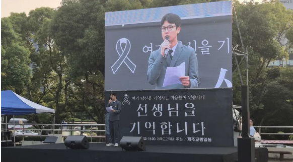 제주도 교육청에 마련된 합동분향소에는 고인의 동료 교사들뿐만 아니라, 제주 전역과 전국에서 찾아온 교사들, 그리고 일부 학부모들도 함께 발걸음을 옮기고 있었습니다. 조용히 고개를 숙이고 헌화를 하는 학부모들의 모습은 깊은 슬픔 속에서도 작지만 의미 있는 희망으로 다가왔습니다. 교사를 공감하고 추모하는 그들의 마음은, 교사와 학부모가 대립하는 존재가 아니라 함께 교육을 이루어가는 공동체라는 사실을 다시금 상기시켜 주었습니다.