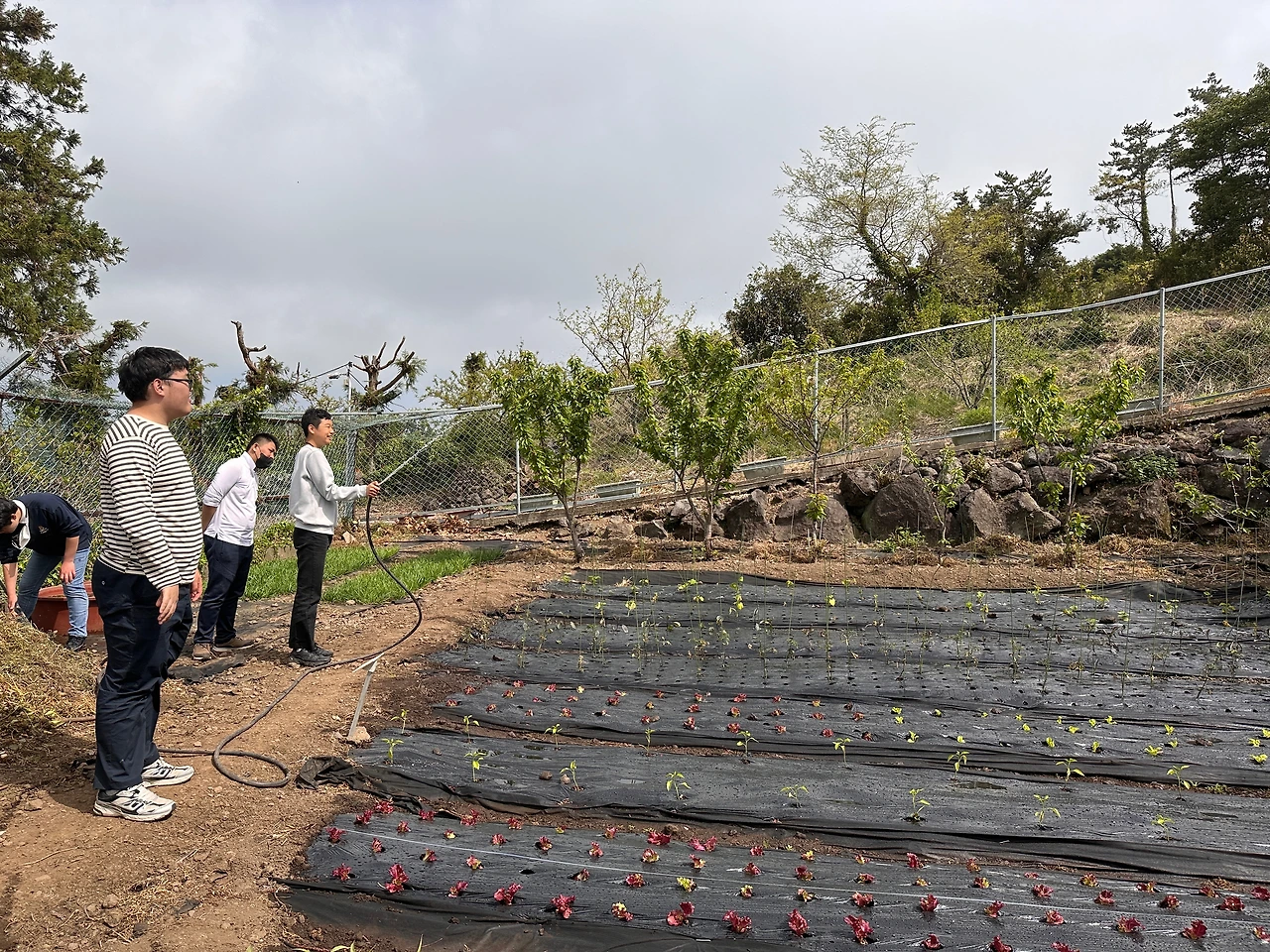 모종 심기가 끝난 후 물 주기 시간입니다. 물 주기 시간은 아이들이 가장 좋아하는 일 가운데 하나입니다. 분명 작물들에게도 가장 좋은 시간일 테지요. 일단 물이 주는 즐거움이 있습니다. 노작을 하느라 살짝 흘린 땀도 영향을 주었을 것입니다. 쪼그려 앉아 땀 흘리며 일을 하는 것에 비하면 서서 호스에서 나오는 시원한 물줄기를 통제하는 일은 더욱 재미있는 경험이 됩니다.