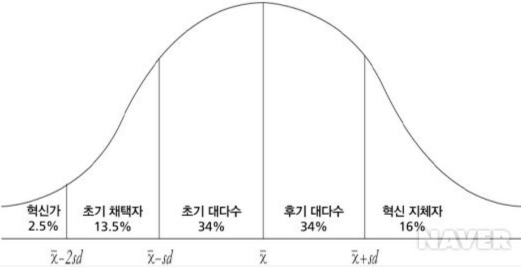 이와 관련하여 조금 더 전문적인 연구와 보고서도 존재합니다. 칼 로저스가 조직의 변화를 위한 변화 곡선을 소개한 바 있는데, 이에 따르면 어떤 조직이든 혁신을 위한 2.5%가 존재한다는 것입니다.