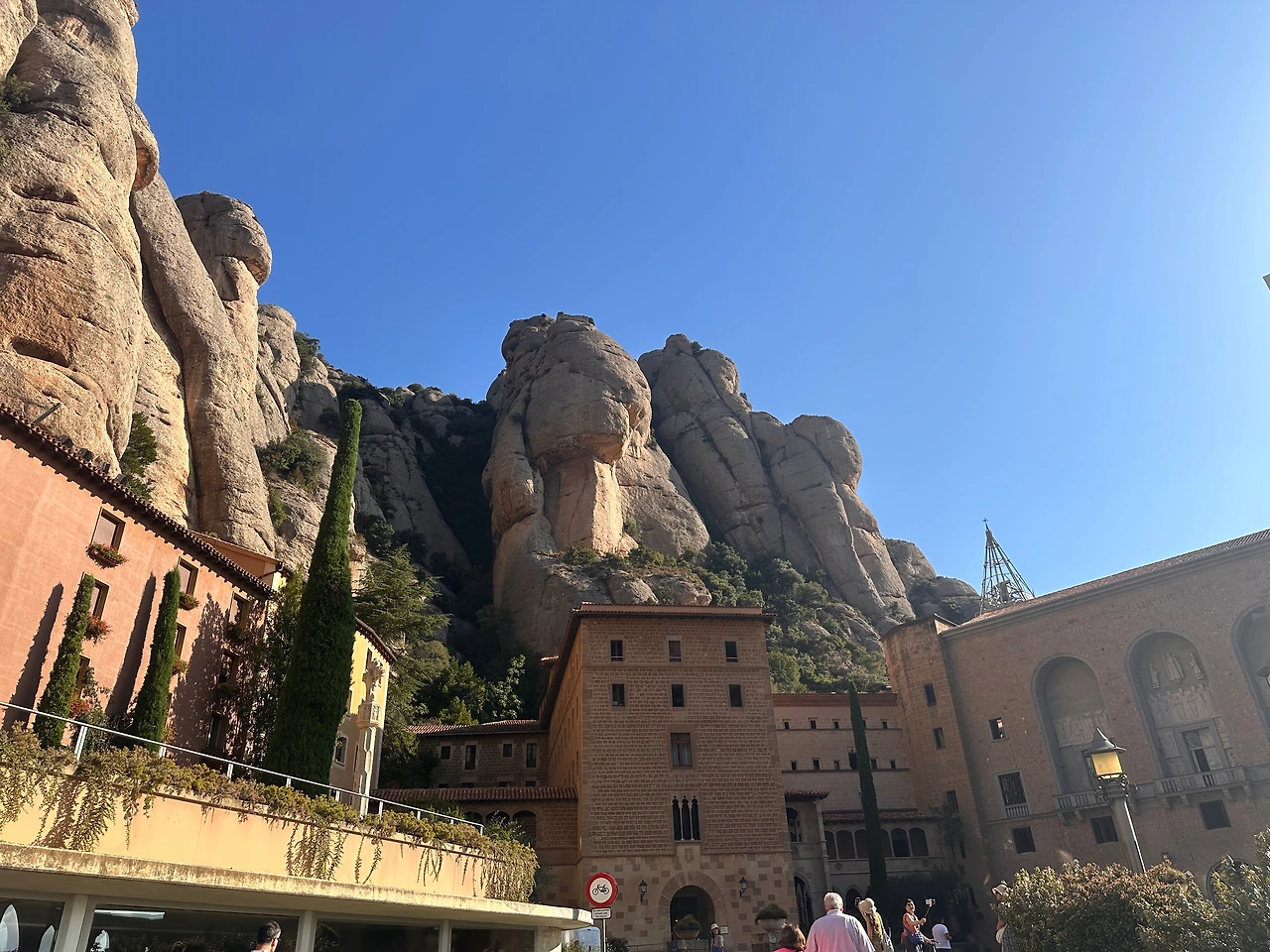 붉은색 외벽을 가진 건물 너머로 기이하게 솟아오른 회색 바위들은, 그 자체로 하나의 조각 작품 같았다. 멀리서 볼 때는 부드럽게 깎인 듯 보이지만, 가까이서 올려다보면 압도적인 규모와 세월의 흔적이 느껴진다. 그 아래 자리한 **몬세라트 수도원(Benedictine Abbey of Montserrat)**은 이 신비로운 자연과 조화를 이루며 자리 잡고 있었다. 수도원의 건축물은 단순하면서도 절제된 아름다움을 갖추고 있었으며, 자연에 경외를 표하는 방식으로 지어진 듯한 느낌을 주었다.