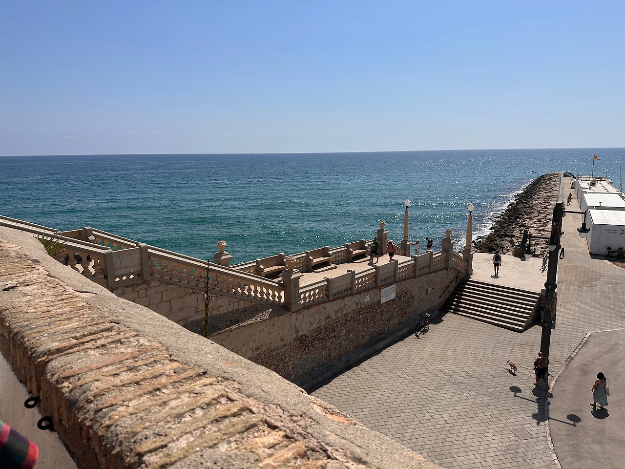 바닷가를 따라 걷다 보니, 시체스를 상징하는 산트 바르토메우 이 산타 테클라 성당이 눈에 들어온다. 역시 가톨릭의 문화인 스페인도 어느 도시를 가든지 성당을 중심으로 만들어졌다. 언덕 위에 우뚝 솟은 이 성당은 시체스에서 가장 많이 사진으로 담기는 명소 중 하나로 계단을 따라 오르면 바다를 배경으로 한 아름다운 전경이 펼쳐지는데, 마치 시간이 멈춘 듯한 느낌이었다