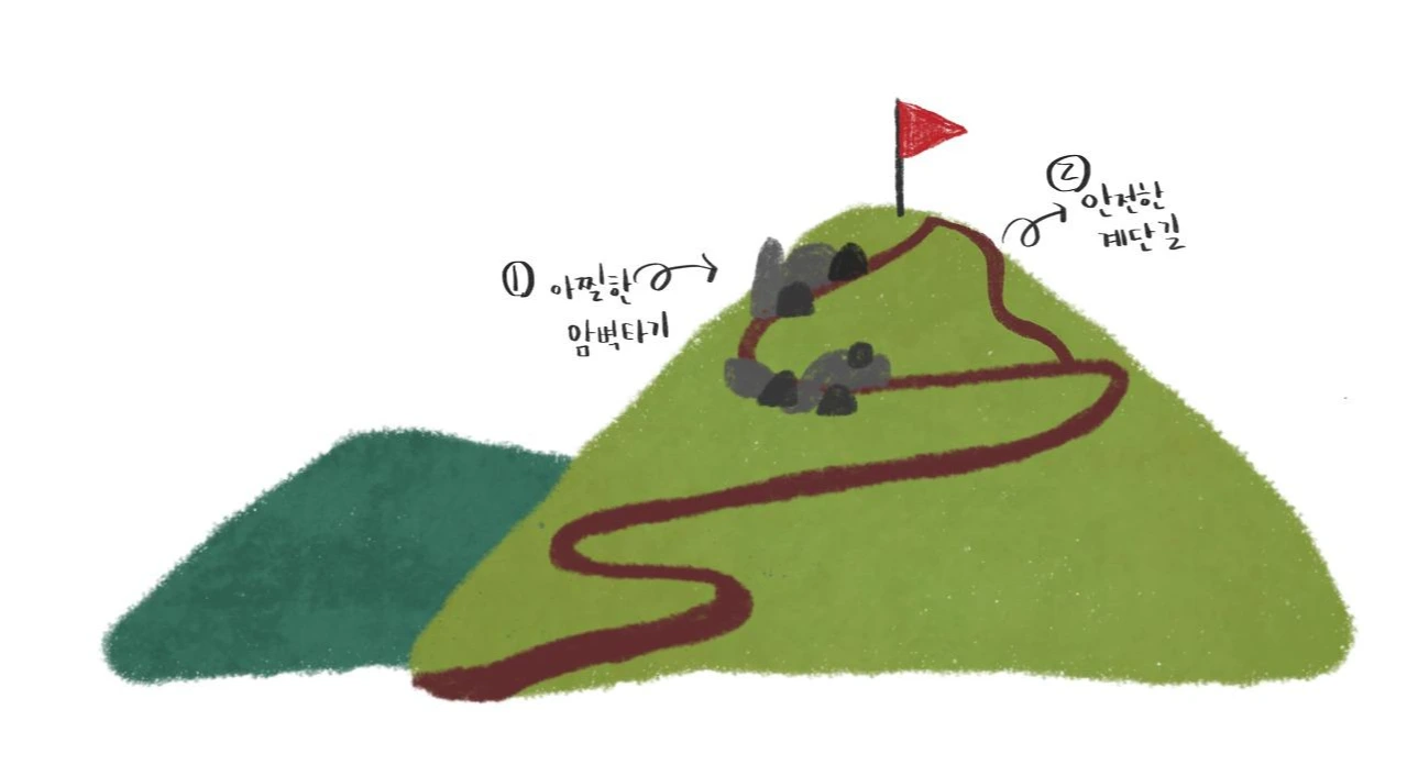 계단보다는 더 빨리 정상에 도착하지만 초보자였던 나에겐 조금 위험했던 코스였다.