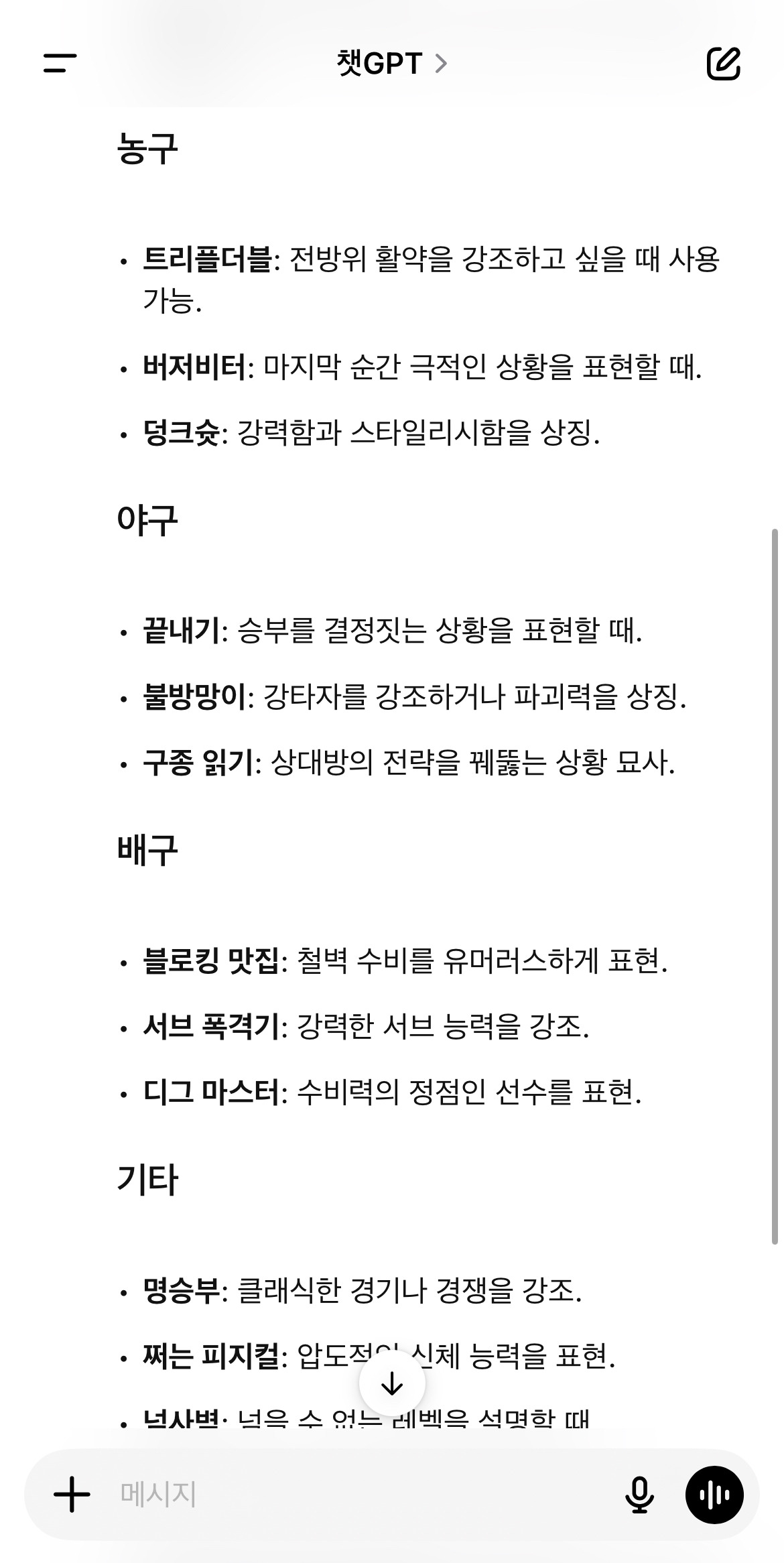 2. 스포츠 좋아하는 사람들 사이에 "입축구 그만해라"라는 강렬한 공감 맥락. 비슷한 내용을 챗 GPT가 새로운 표현(= 감독님 빙의 그만)으로 만들어준 것! 스포츠에 관심 없는 내 머리에서 나오긴 힘든 표현이었을 것이다. 고객들이 좋아하는 표현으로 후킹 한 다음에 앱 설명 간단하게 휙 해주면서 설치 유도하면 되겠다! 히는 자연스러운 흐름까지 완성된 것이다.