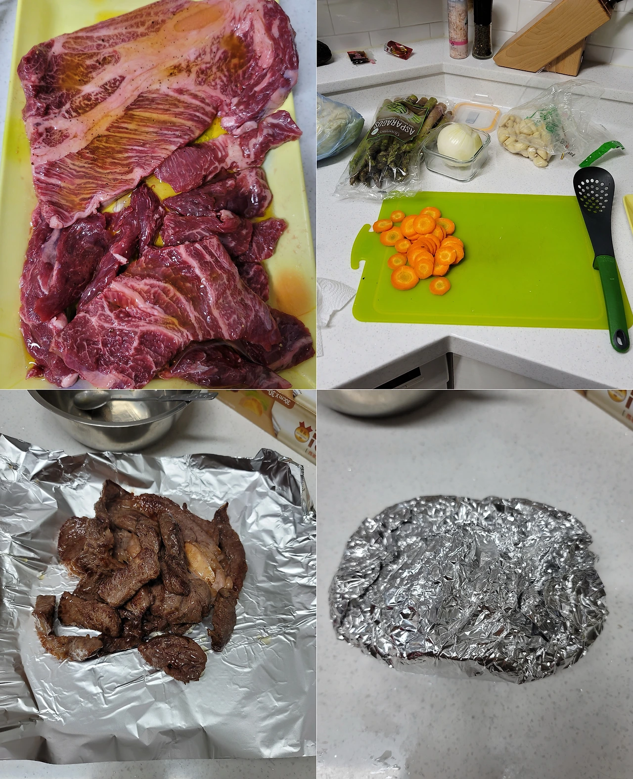 올리브유에 재워두었다가 살짝 굽고 포일에 싸서 10분 대기, 레스팅 과정도 가져보았다 ㅋㅋ(이러니까 흑백요리사 같잖아~)