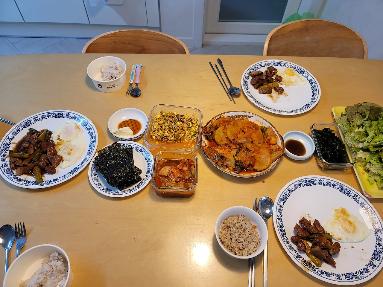 언젠가는 희한하게 기름을 잔뜩 머금고 졸여져서 맛있는 중국요리 느낌이 난 적도 있었는데; 그걸 다시 재연하기가 쉽지 않다 ㅋㅋ 그냥 바짝 졸여서 먹고 있음 ㅋ 이러면 고기도 야들야들하니 맛난 서가 앤 쿡 st 스테이크 완성 ㅎㅎ