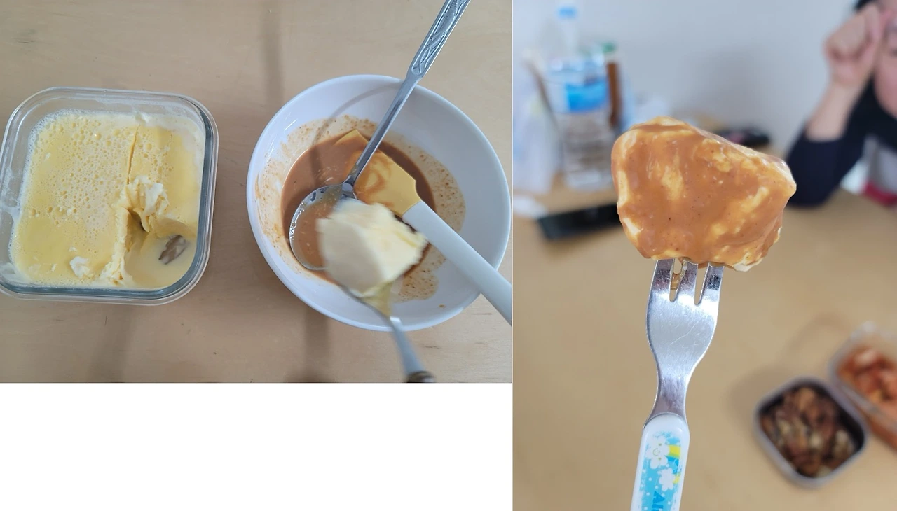 스테비아 한 꼬집, 소금 한 꼬집 넣고 잘 섞어서 아이스크림 찍먹!