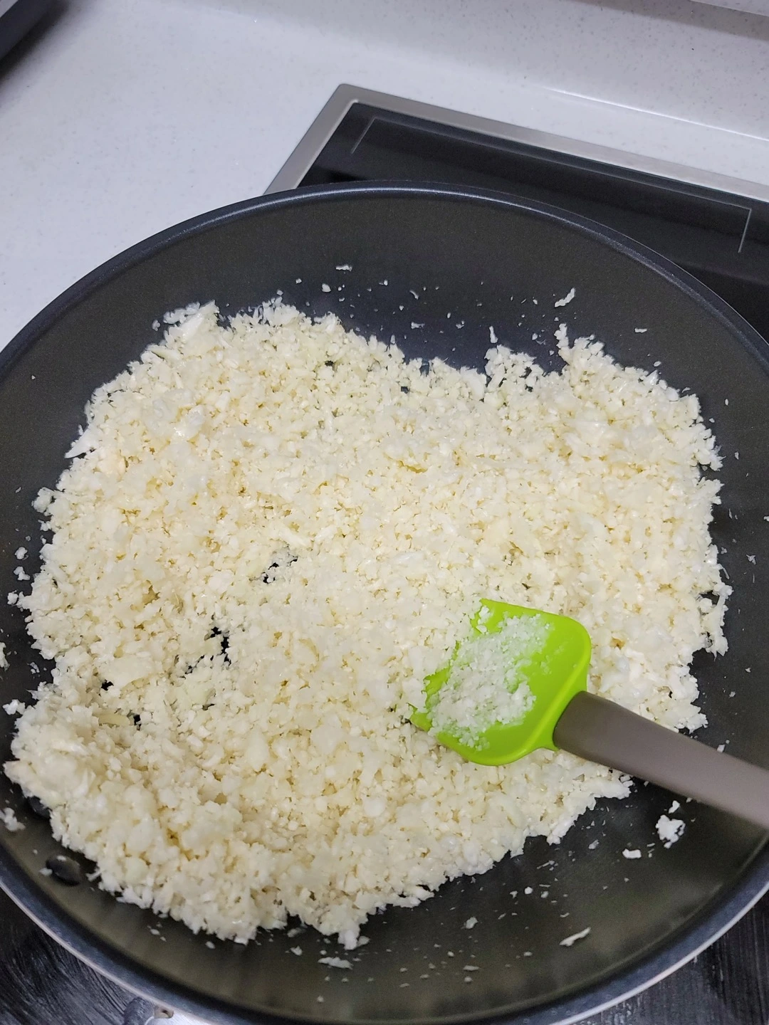 1. 아주 센 불에 기름 붓고 컬리플라워 잘게 다진 것 넣고 수분 다 날려주기