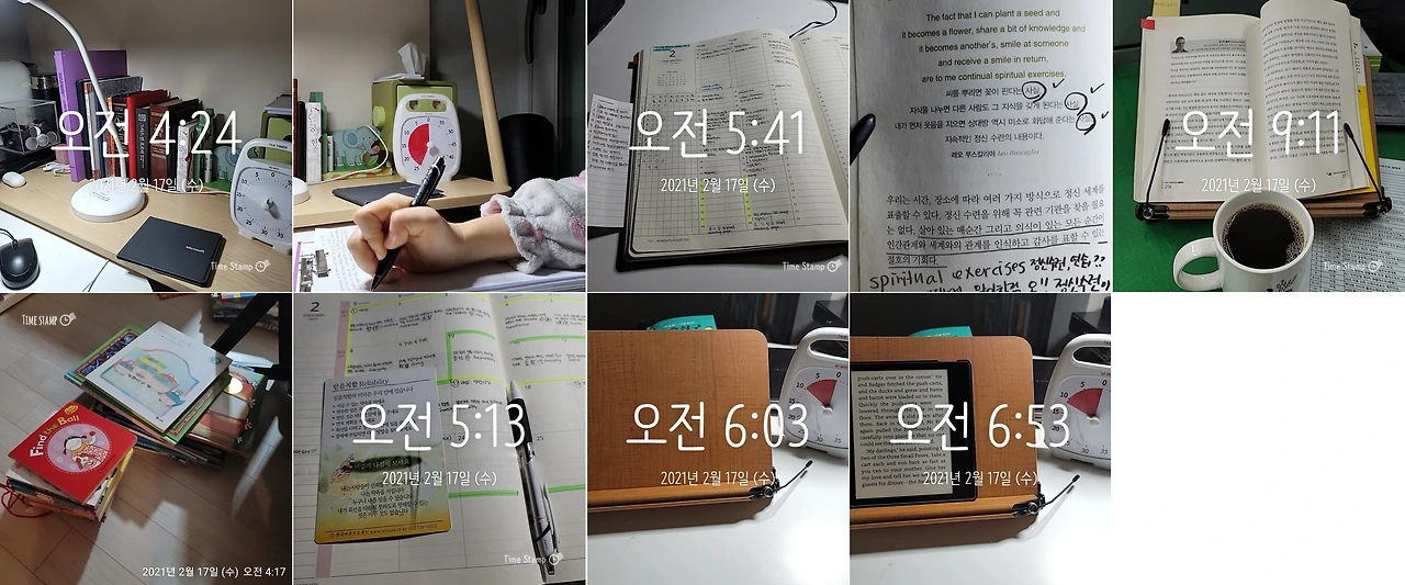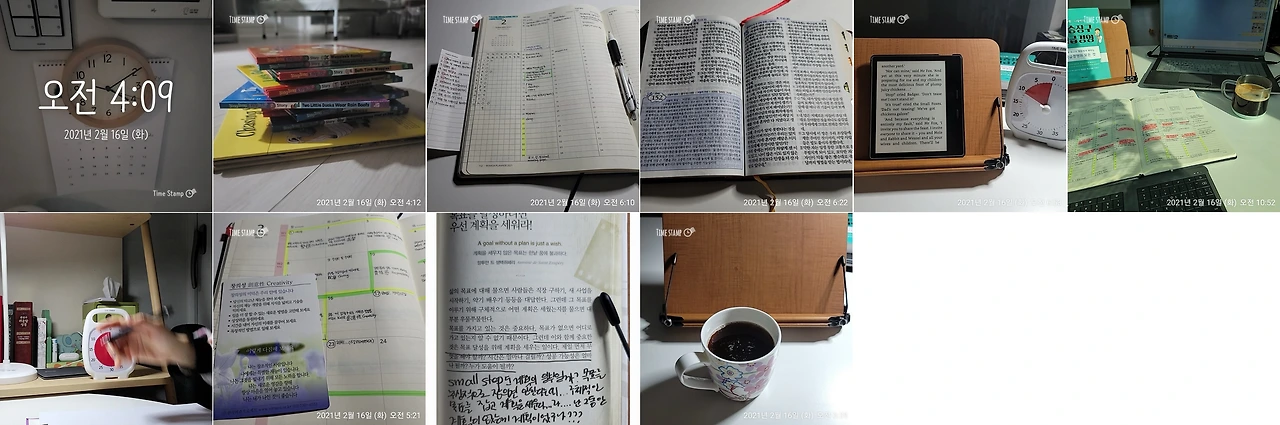 공복에 따뜻한 물 마시기, 기도 및 미덕카드 필사하기, 성경책 읽기, 하루 한 장 글쓰기(모닝페이지), 틈새독서, 영어원서 읽기, 베껴쓰기, 외국어공부하기(중국어)...