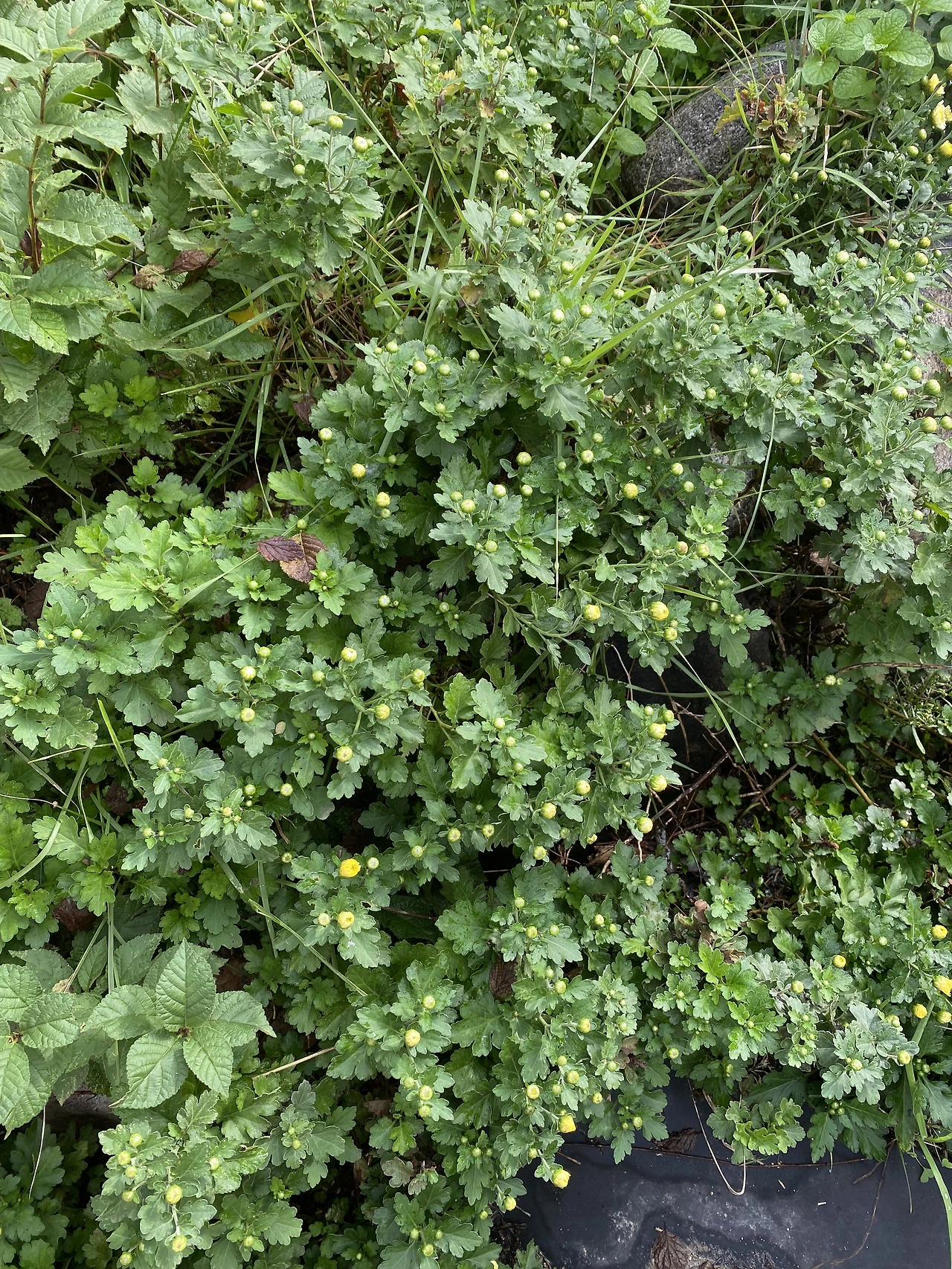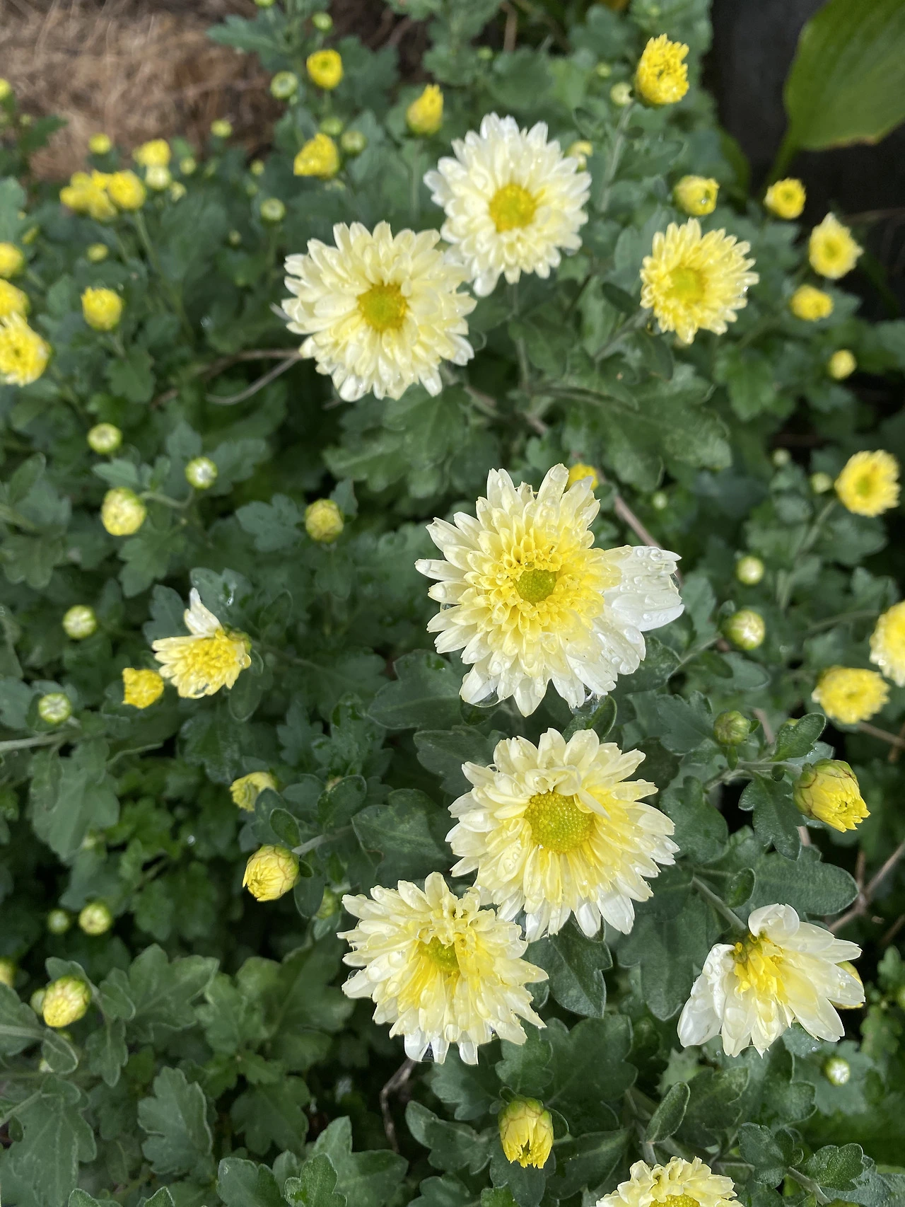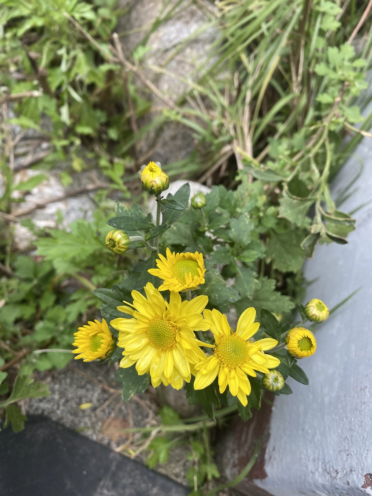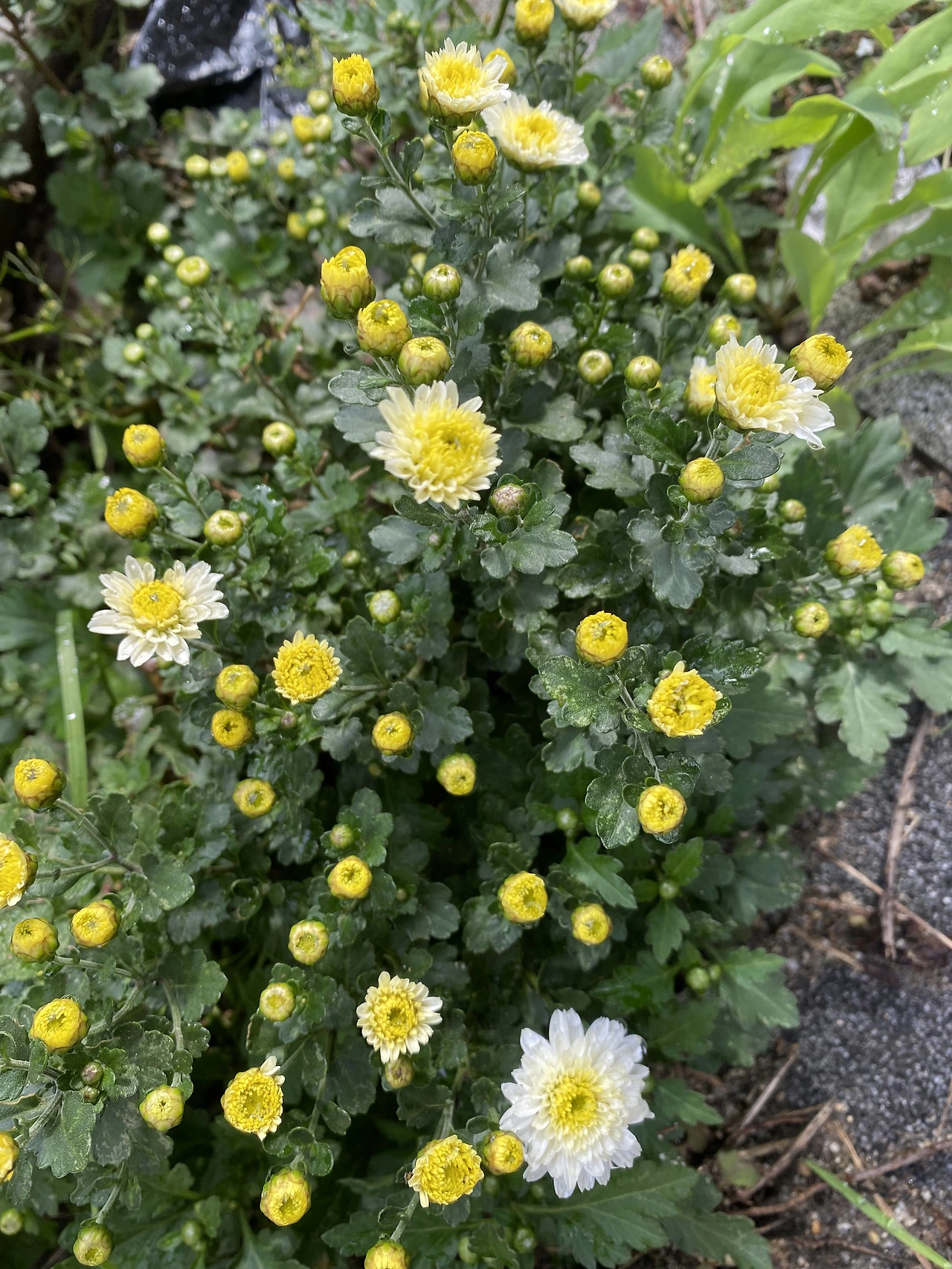 비 오며 동글게 웅크리고 있던 국화 봉오리가 하나둘 벌어지더니