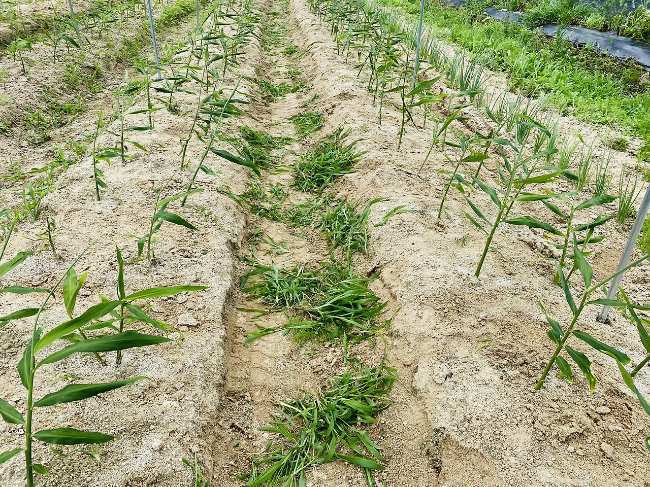 주말을 맞아 해가 떴다. 에잇, 일요일도 비가 퍼부으면 잡초 뽑기를 더 미루는 건데. 이런 마음 반. 비가 잠시 그쳐서 다행이다. 저 푸른 초원에 잡초의 기세에 작물들이 다 숨어 버렸네. 안 뽑으면 손대기 힘들어질 텐데 오늘은 다 뽑아버려야지. 이런 마음 반. 딱 반만 뽑고 끝내면 좋겠다. 딱 반은 제초 매트를 깔았으니 반이 맞긴 맞다. 그래도 많다.