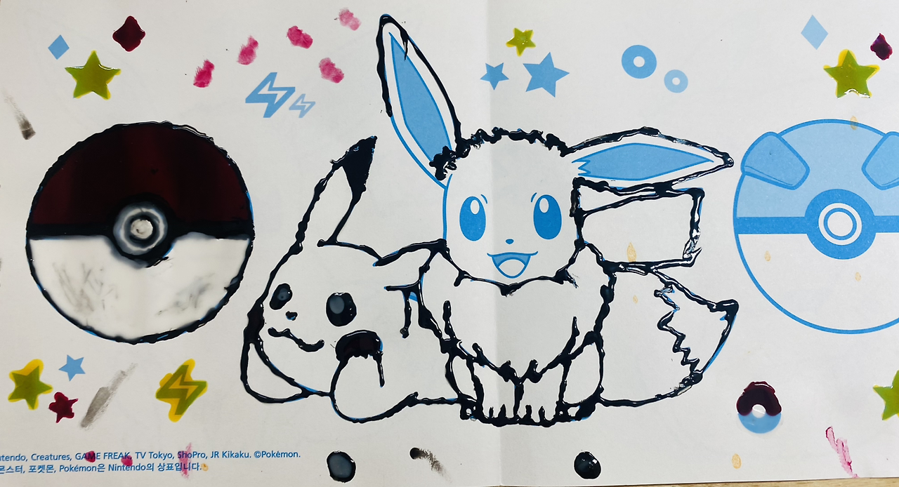포켓몬볼을 멋지게 칠했다. 까만 선 긋기에 혼신의 힘을 다했다. 구슬땀이 흘러내릴라. 대충 할 일을 마무리하고 아이 옆에 앉았는데 뭔가 이상하다. 종이 위에 풀로 그림을 그리고 있는 복실이.