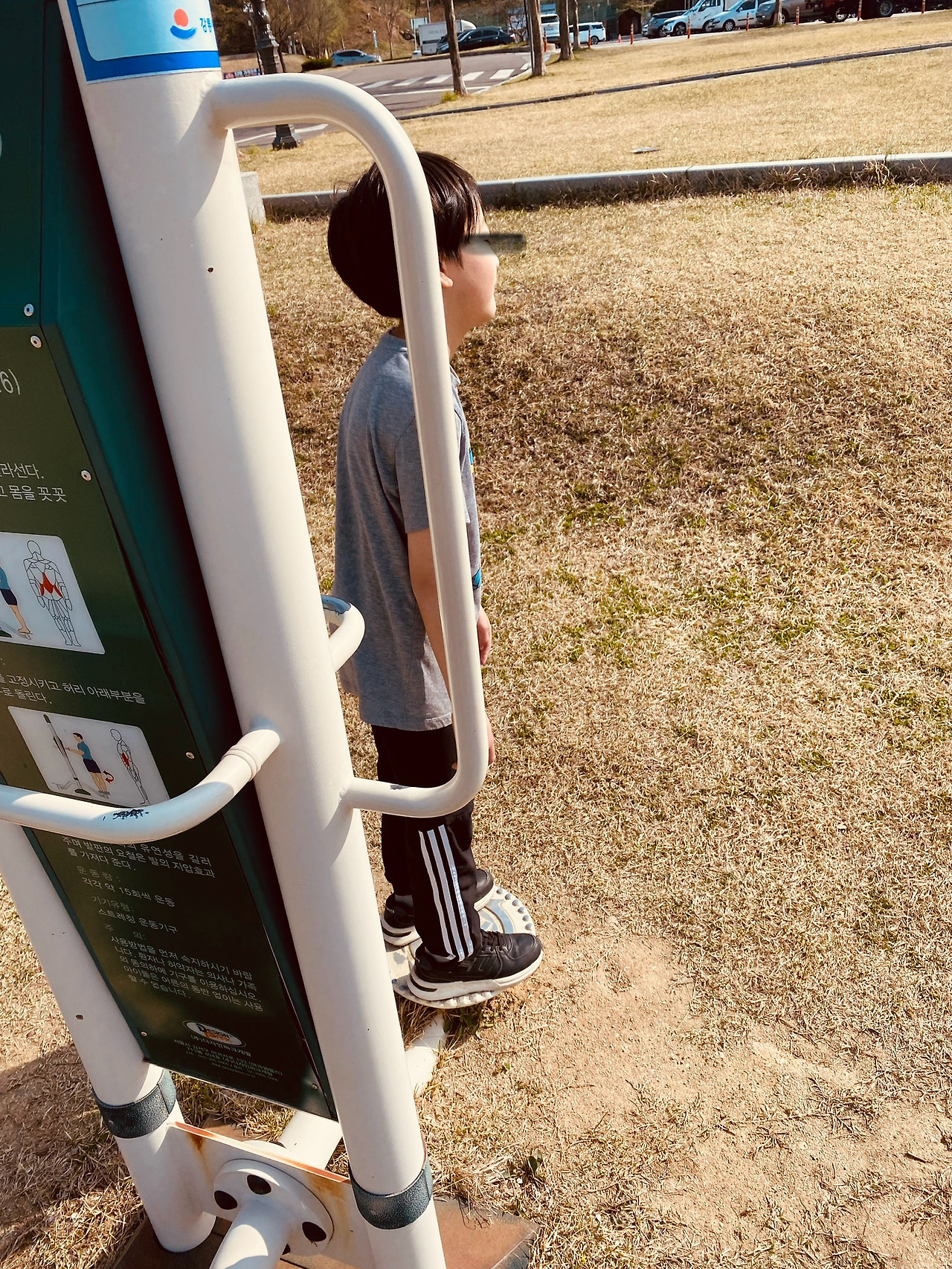 복실이는 돌아가는 운동기구 돌림판 구경 중이었다. 휙 돌렸더니 오빠가 내려왔다. 그러곤 다시 올라갔는데 콩 박았단다. 평정심을 잃은 달복이의 휘청임이 별구경을 시켜줬단다.