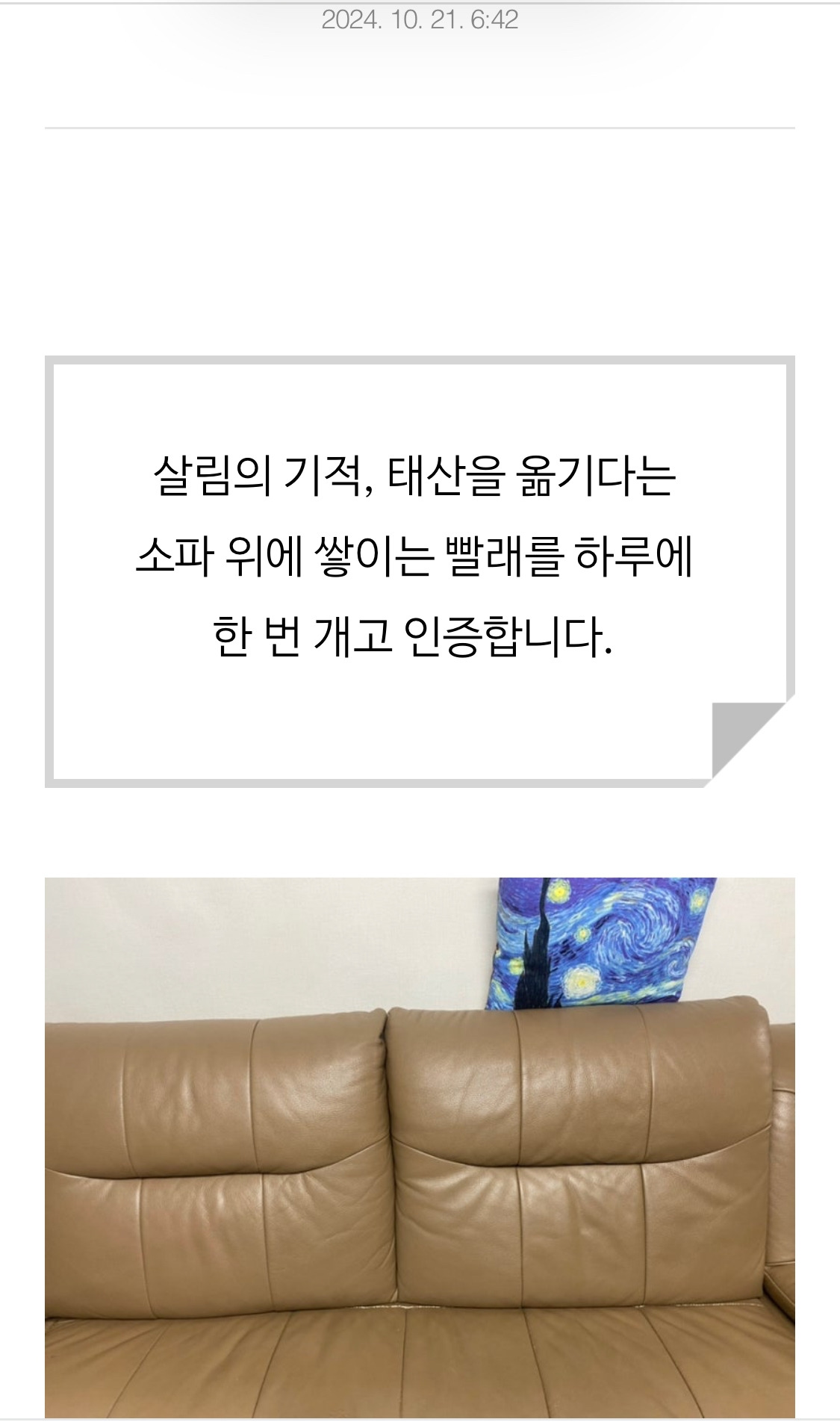 일요일은 집에 있는 동안 계속 빨래터 풀가동입니다. 세탁기, 건조기 만세! 이 많은 빨래 다 갤 수 없습니다. 소파 위는 비어 있냐고요? 절대 아니지요. 늘 빨래가 가득입니다. 그런데 뭐가 다르냐고요? 그냥 제 만족인지도 모릅니다.