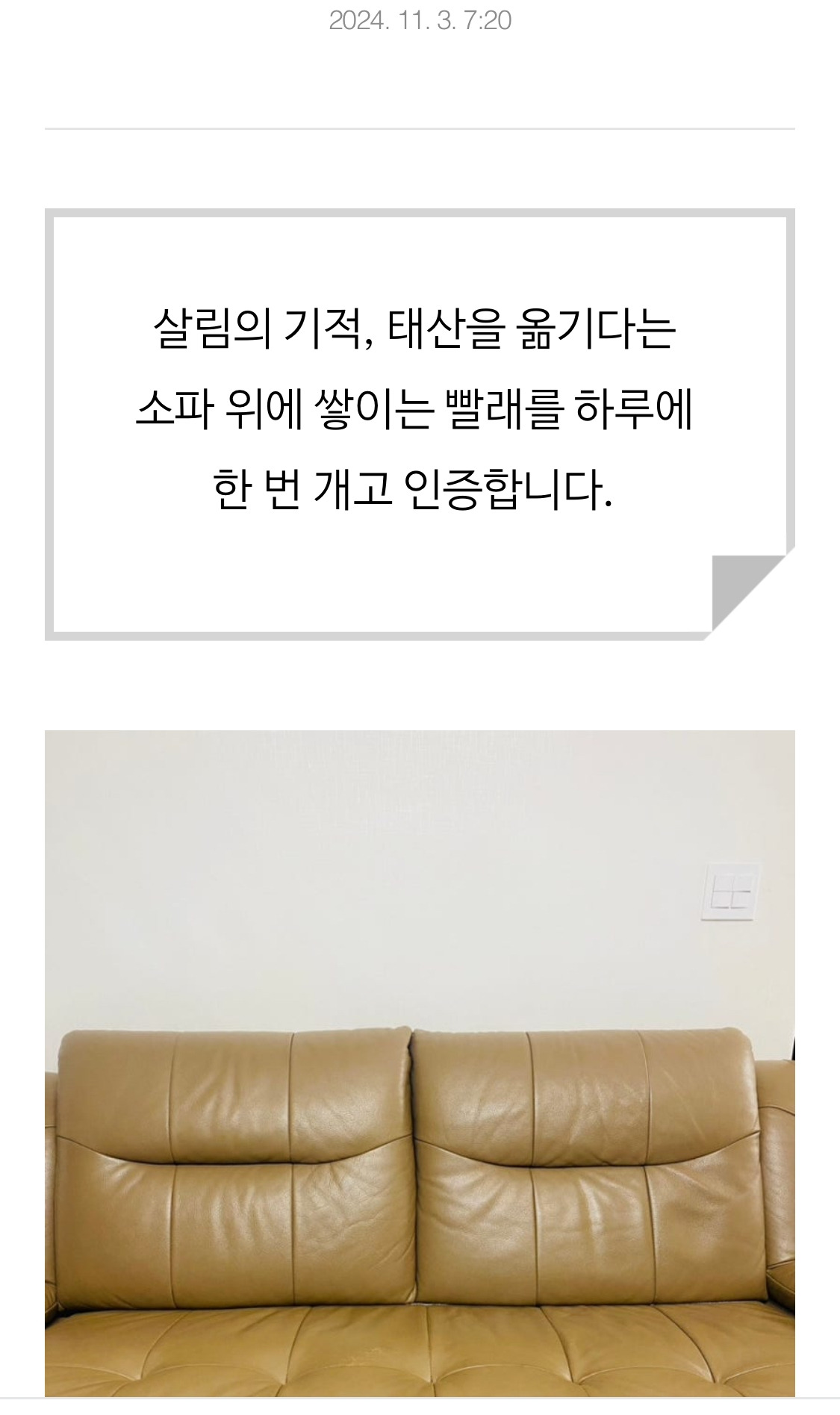 빨래는 개는 건 정말 큰일이었습니다. 쌓이는 산을 보며 어느 날 쓴 글에는 이런 말도 있지요.