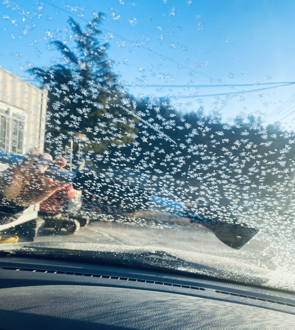 출근 전 온도는 12.4도. 남편이 긁개를 가지고 온다. “달복아 긁개, 밀개, 자르개. “ 요즘 선사시대를 공부하는 달복이에게 말하니 싱긋 웃는다. 남편이 긁개를 가지고 유리창을 긁는다. 운전석만 긁고 조수석은 안 긁어준다. 창문에 핀 얼음꽃을 감상하란다. 눈이 안 내렸는데도 물기가 어리어 얼어붙는다. 도로에도 물기가 어리면 지난번처럼 얼어붙지 않을까 걱정이 된다.