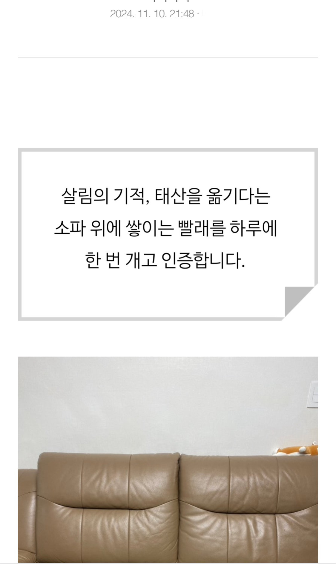 어젯밤에는 빨래가 없었습니다. 자동 패스 아주 좋네요. 빨래를 안 하니 소파가 깨끗했습니다.