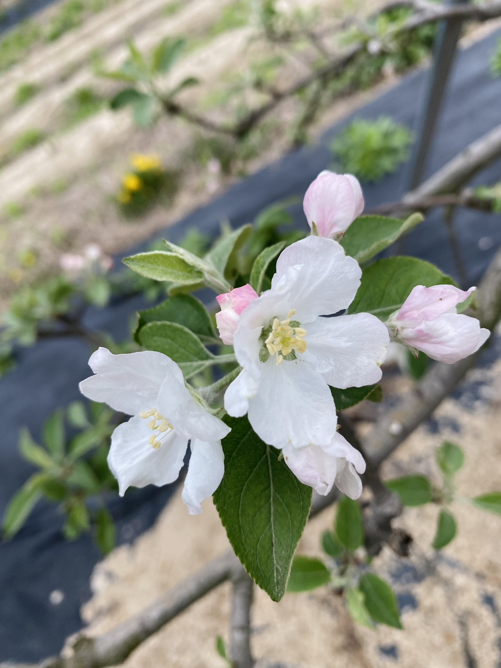 사과나무에 꽃이 피었다. 복실이와 손을 잡고 사과 꽃구경을 나왔다. 감기 기운이 있는지 아침부터 열이 나는 아이. 집 안에만 있으면 답답할까 봐 겉옷 두 개를 덧입혀 밭으로 데리고 나왔다. 풀이 올라오는 속도가 더 빨라지고 있다. 풀들을 밟지 않게 살금살금 걸어 사과나무까지 도착했다.