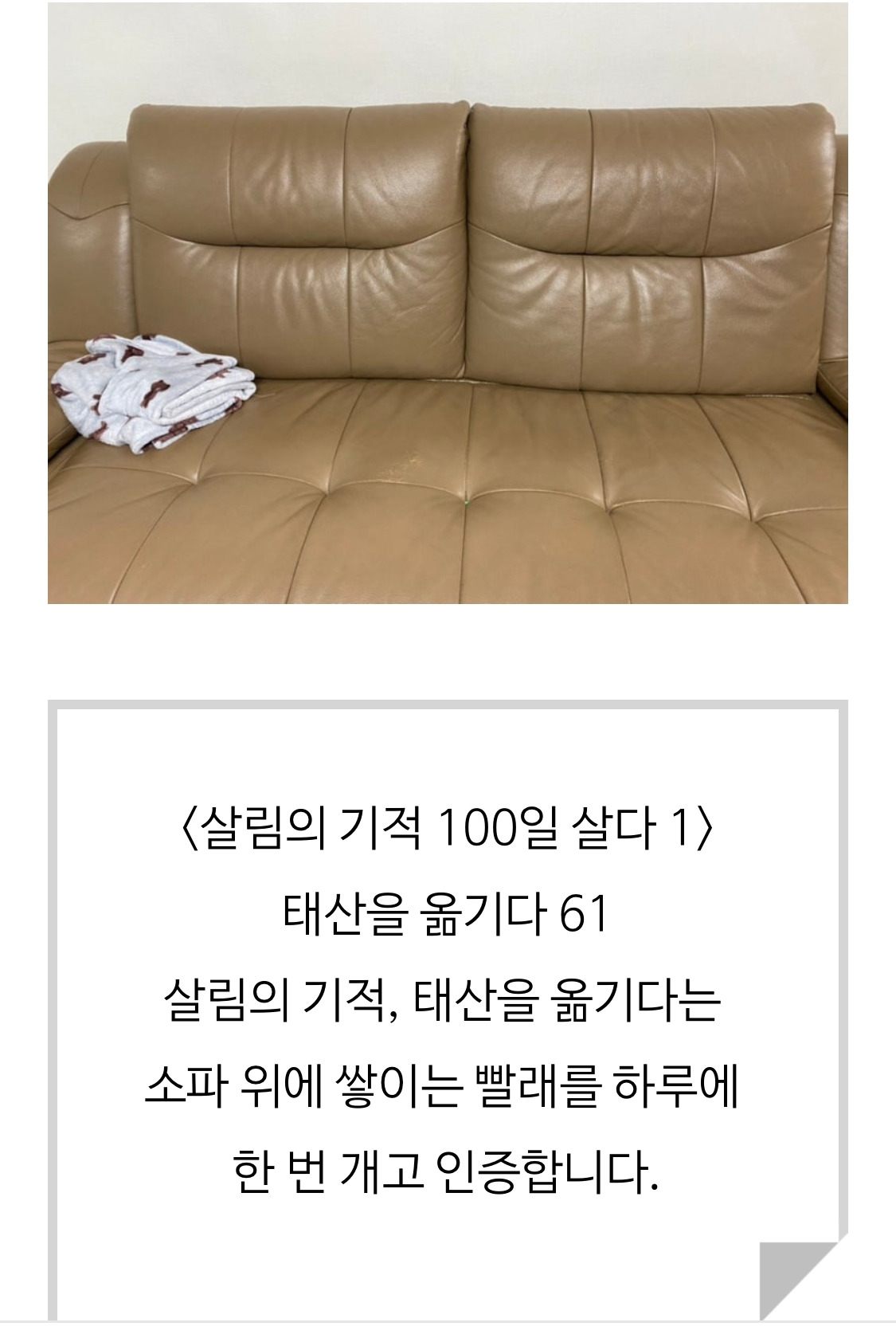 우리가 이루어 내는 수많은 일들 중 하나에 불과하다. 내가 지켜내는 이름 없는 수많은 소파가 곳곳에 배치되어 있다. 소파에서 빨래를 덜어내는 일이 태산이라고 한다면 나는 하루에 몇 번의 태산을 옮기는 것인지 셀 수가 없다. 어제도 수고했고 오늘도 수고했다. 늘 수고가 많다. 나야.