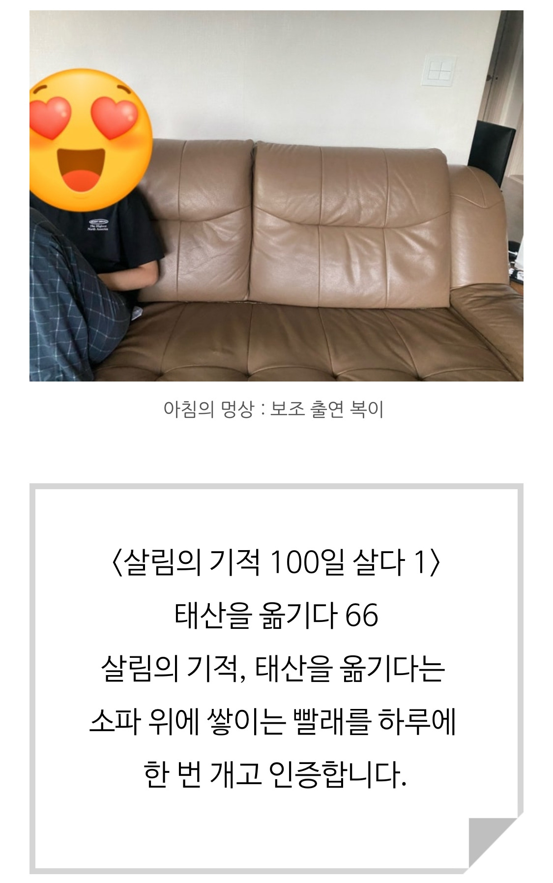 출근 전 위임한 빨래는 보이지 않았다. 그렇다면 소파는 빨래 없이 텅 비어있어야 했다. 그런데 임무를 완수한 세 명의 남자가 앉아 있었다. 나는 텅 빈 소파를 원한 것일까? 세 명의 장정이 앉으니 꽉 차 보였다. 소파가 무너지지 않을까? 푹 꺼져 내려앉은 소파를 보며 맘이 불편하였다. 그러나 소파 걱정이 아니라는 걸 금세 알게 되었다. 모두의 소파인데 소파가 내 것인 양 자리 욕심을 내고 있는 나를 발견했다. 물건에 맘을 쏟으면 이렇게 불편한 마음이 생긴다.