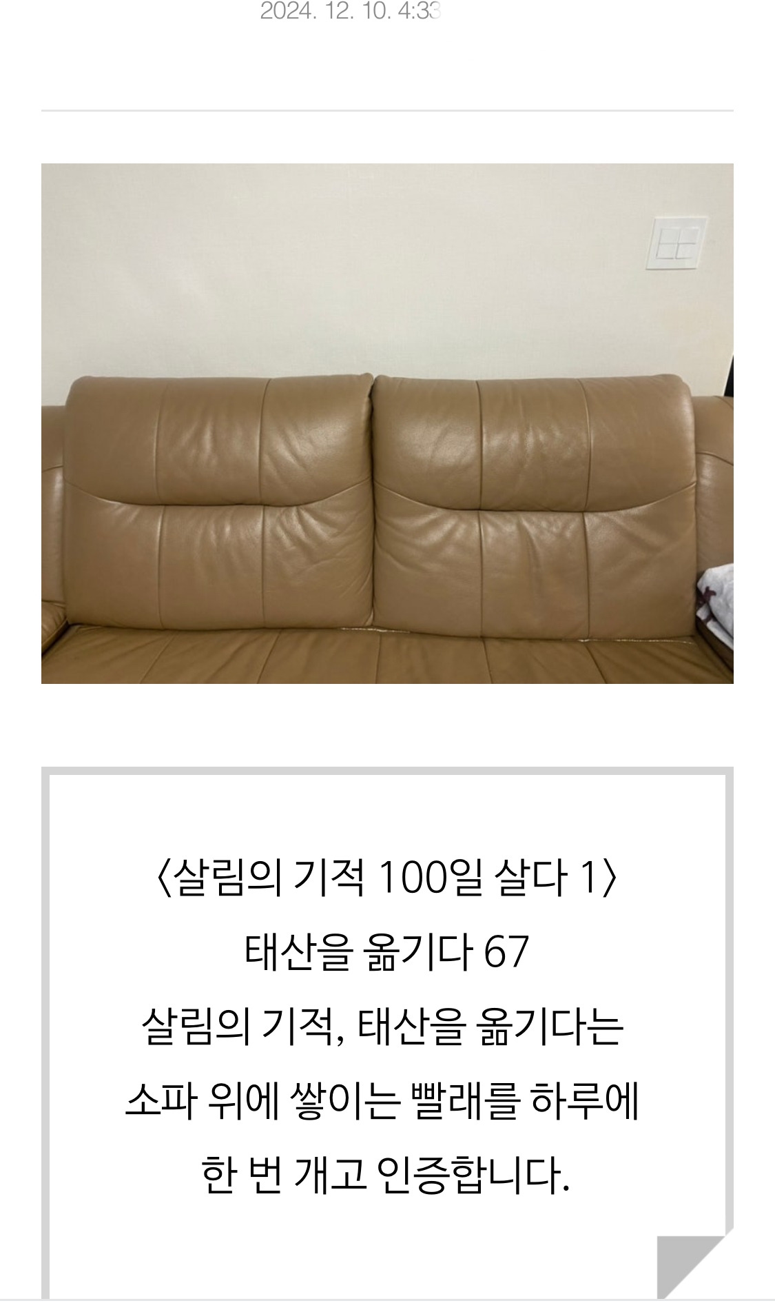 어릴 적 새벽잠 못 주무시던 아버지 생각이 난다. 새벽의 소파는 별생각을 다 이끌어낸다. 푸근하다 못해 이제는 따뜻해서 그런가 보다. 좀 있으면 편안해서 잠이 올 것을 안다. 조금만 앉아있다 아침의 빨래에게 자리를 내어주어야겠다. 나 대신 건조기에서 갓 나온 따끈한 빨래가 다시 소파에게 온기를 전해줄 거다.