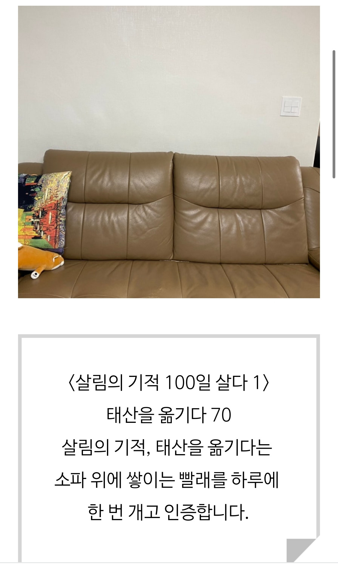 소파에는 아침의 빨래가 쌓이고 있다. 따끈한 빨래가 한 무더기 쌓였다. 하기 싫은 집안일 미룰 수는 있어도 안 하고 살 수는 없다. 평생 공부하는 마음으로 매일 쌓이는 빨래를 개갰다.