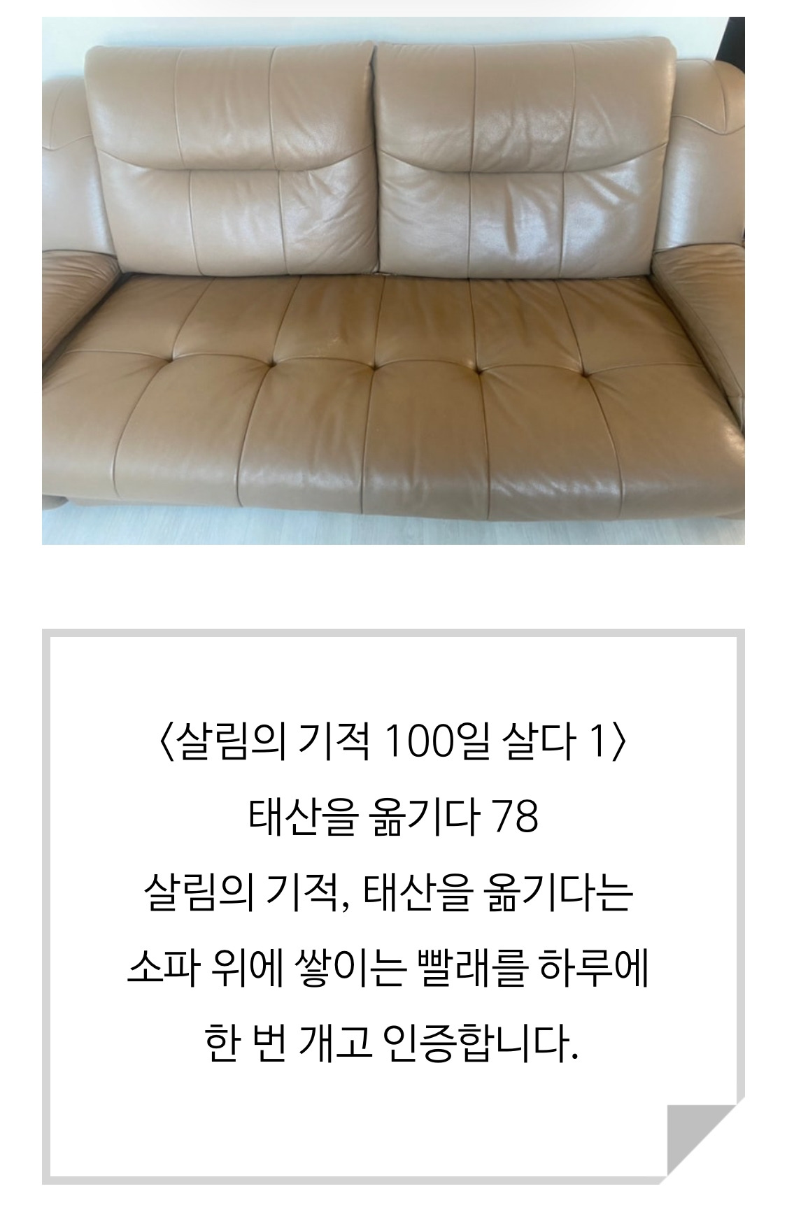 복동이 대표가 소파 사진까지 알차게 찍어 나에게 문자로 보내준다. 사진을 찍기 전에 건조기 속 빨래가 나온다면 큰일이다. 처음부터 다시 개야 한다. 날 위한 빨래 개기가 아닌데 선물을 받은 것 같다.