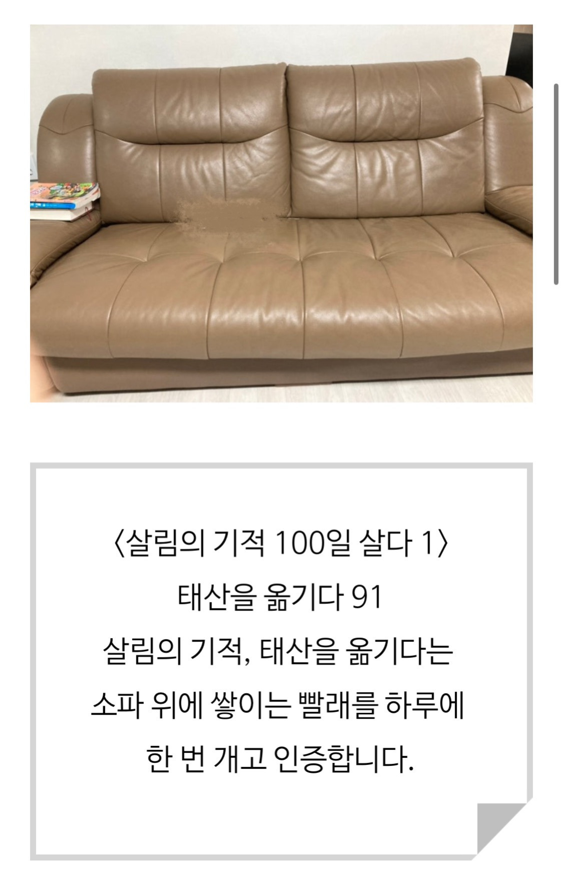 100일의 기적이 이루어지고 있나 점검해 본다. 쌓이는 것은 늘 같다. 하루의 절반은 빨래가 있고 하루의 절반은 빨래가 없다. 성과 중 하나는 빨래를 꼭 개겠다고 마음먹은 일이다. 매일 꼭 해야 하는 일로 빨래 개기가 정해졌다.
